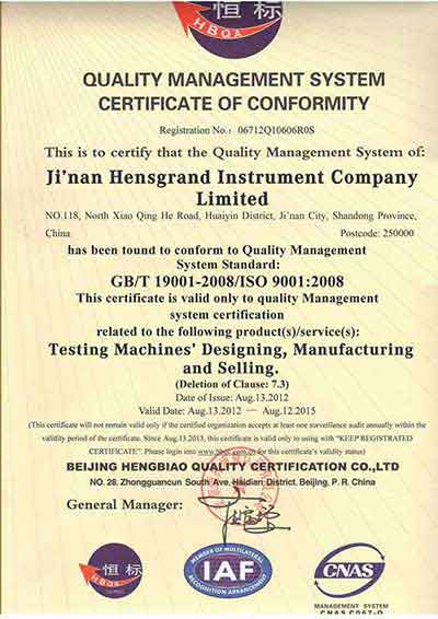 質(zhì)量管理體系認證證書